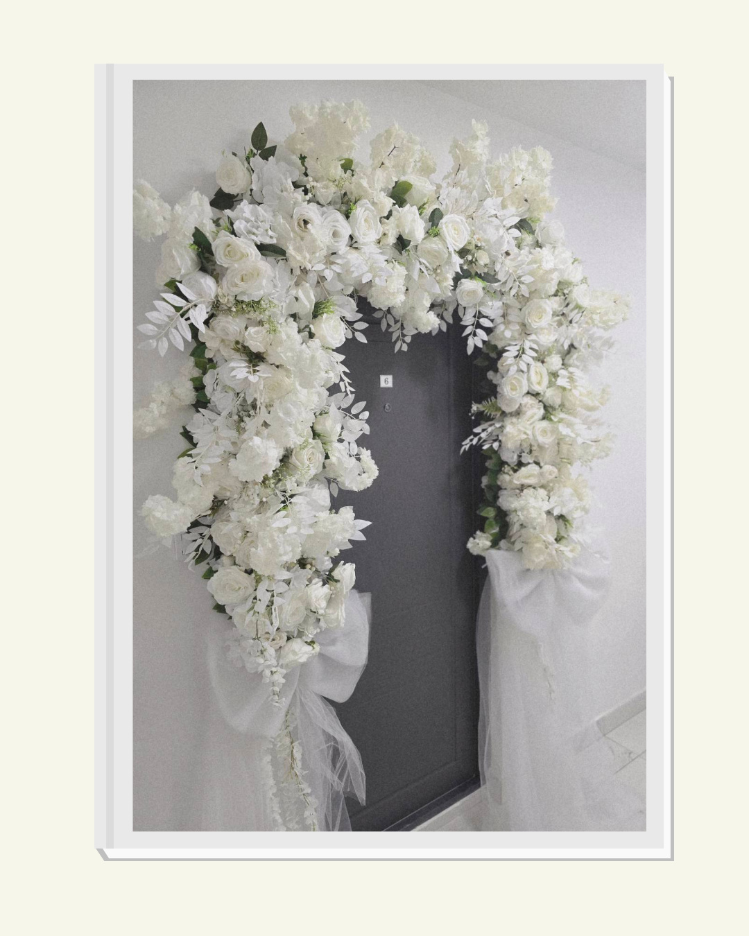 Dekoracija za gelendere , til  sa 4 pufn plus centralna veca pufna  sa real touch cvecem