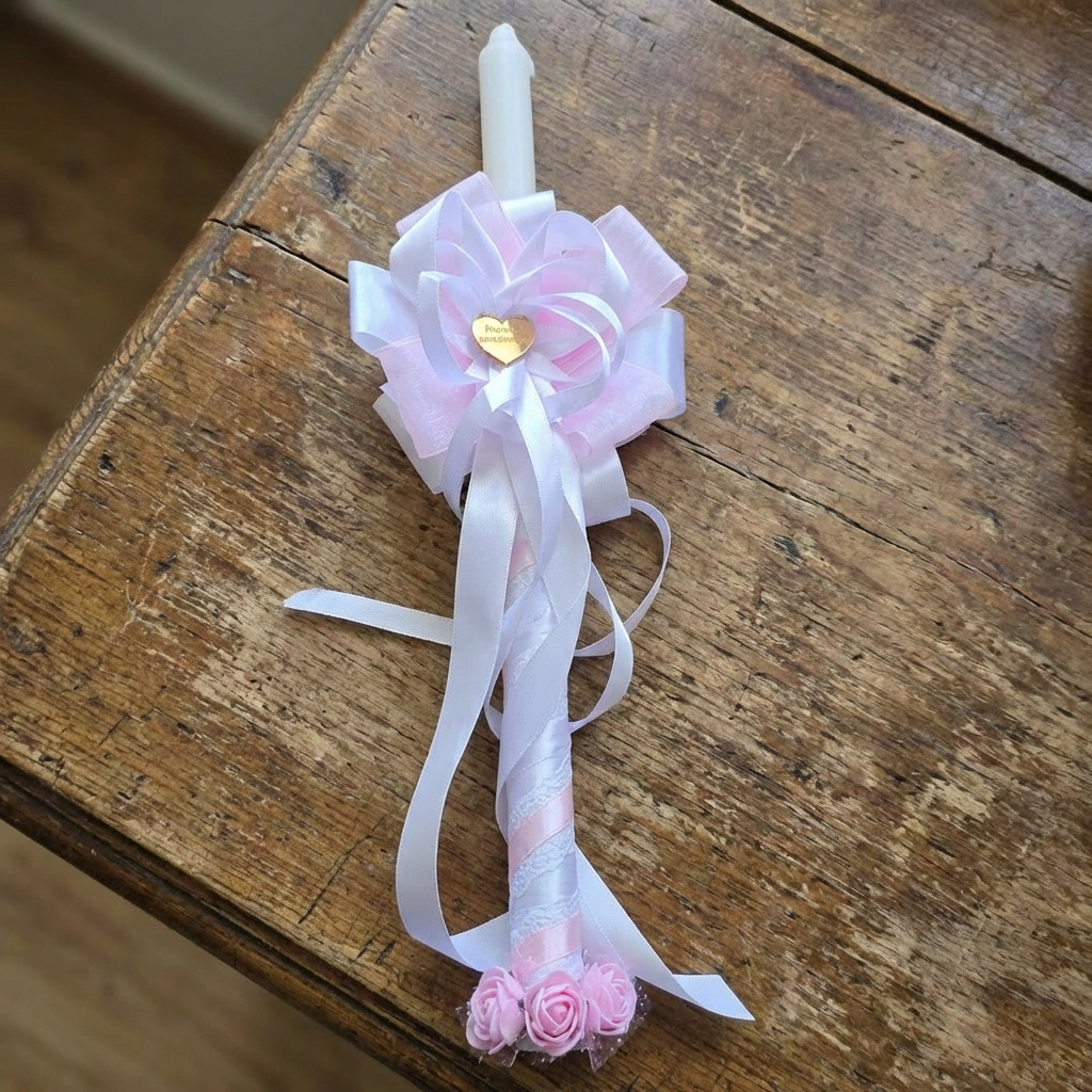 Dekorativna sveca -roza srecno krstenje S177-1