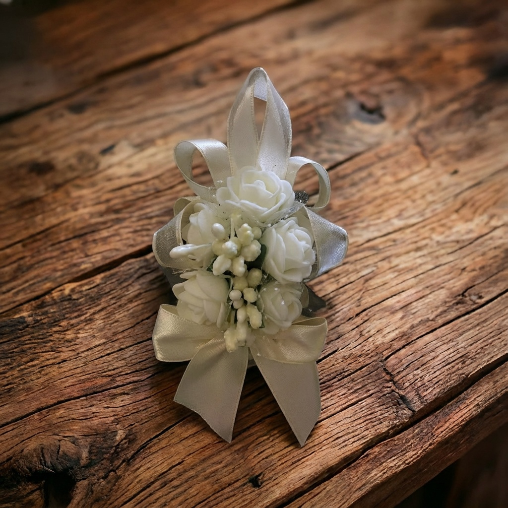 Cvet za glavne goste S80-Saten 2cm unakrs,cipka,kr.bucur-KREM