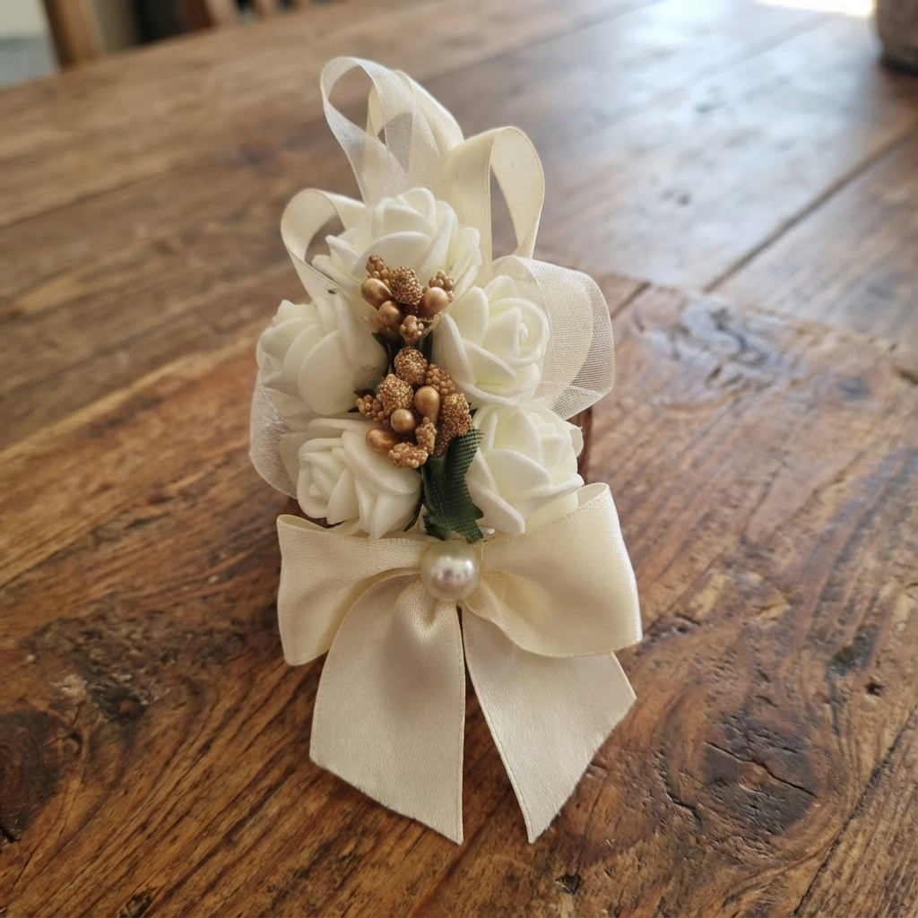 Deverski cvet S79-juta ,velika ruza i gipsofil beli 250 rsd
