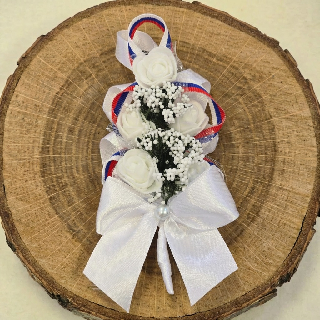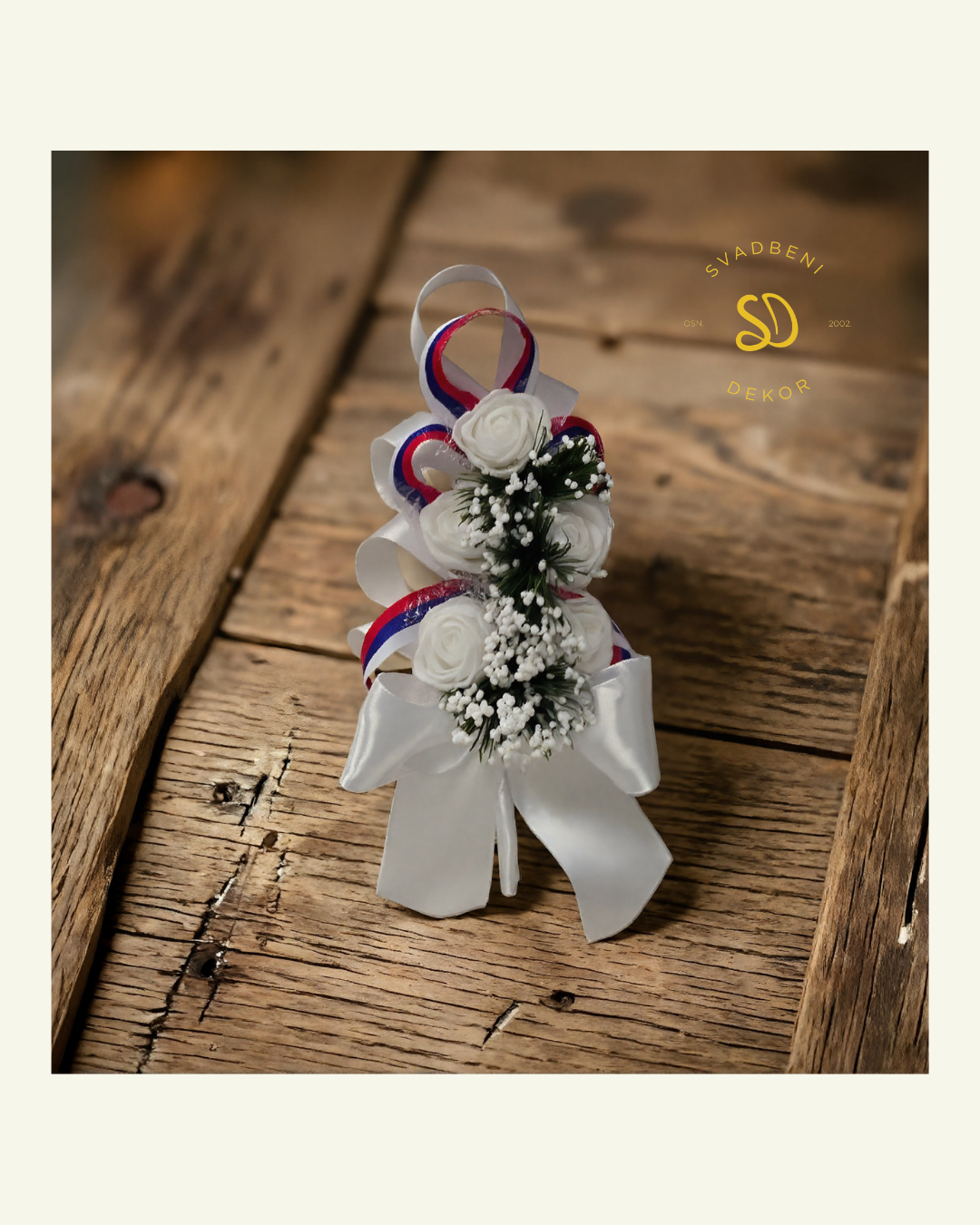 Cvet za glavne goste S80-Saten 2cm unakrs,cipka ,krupan bucur i srce gravirano