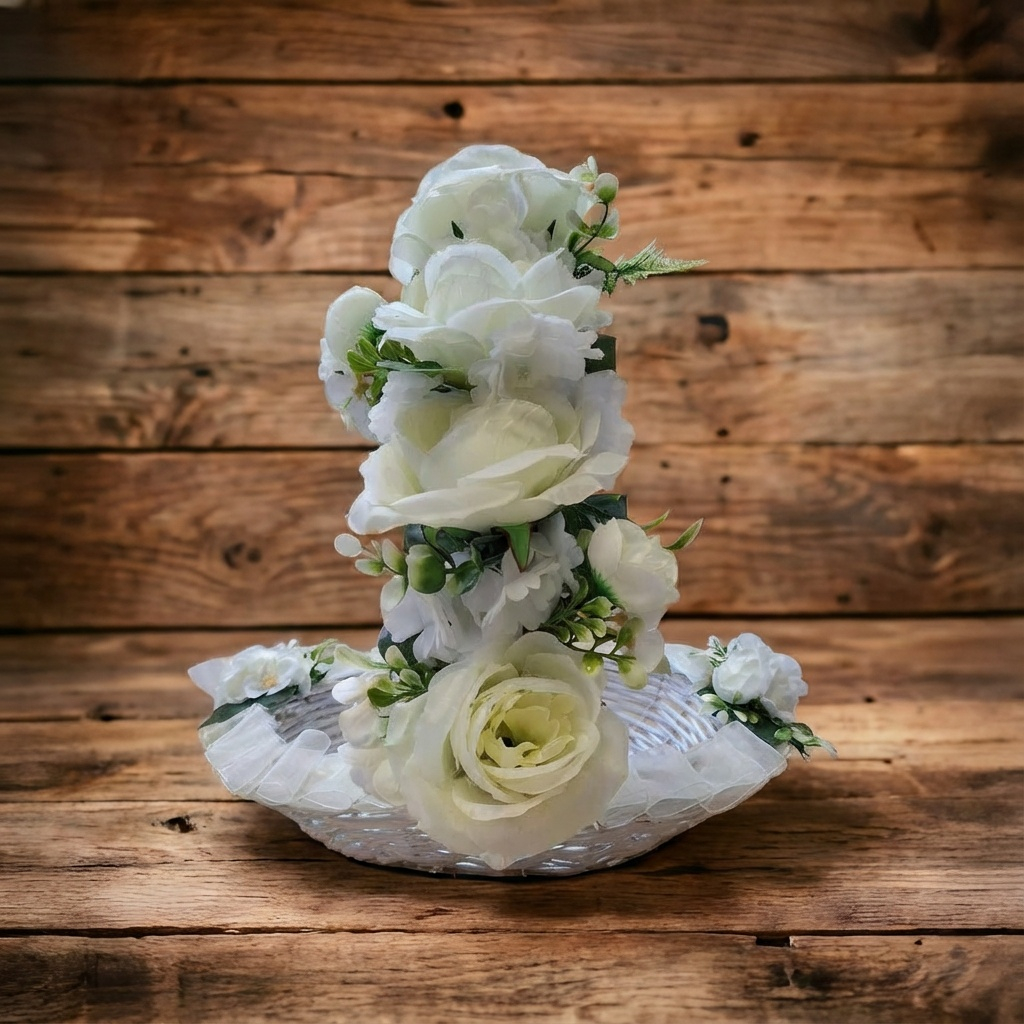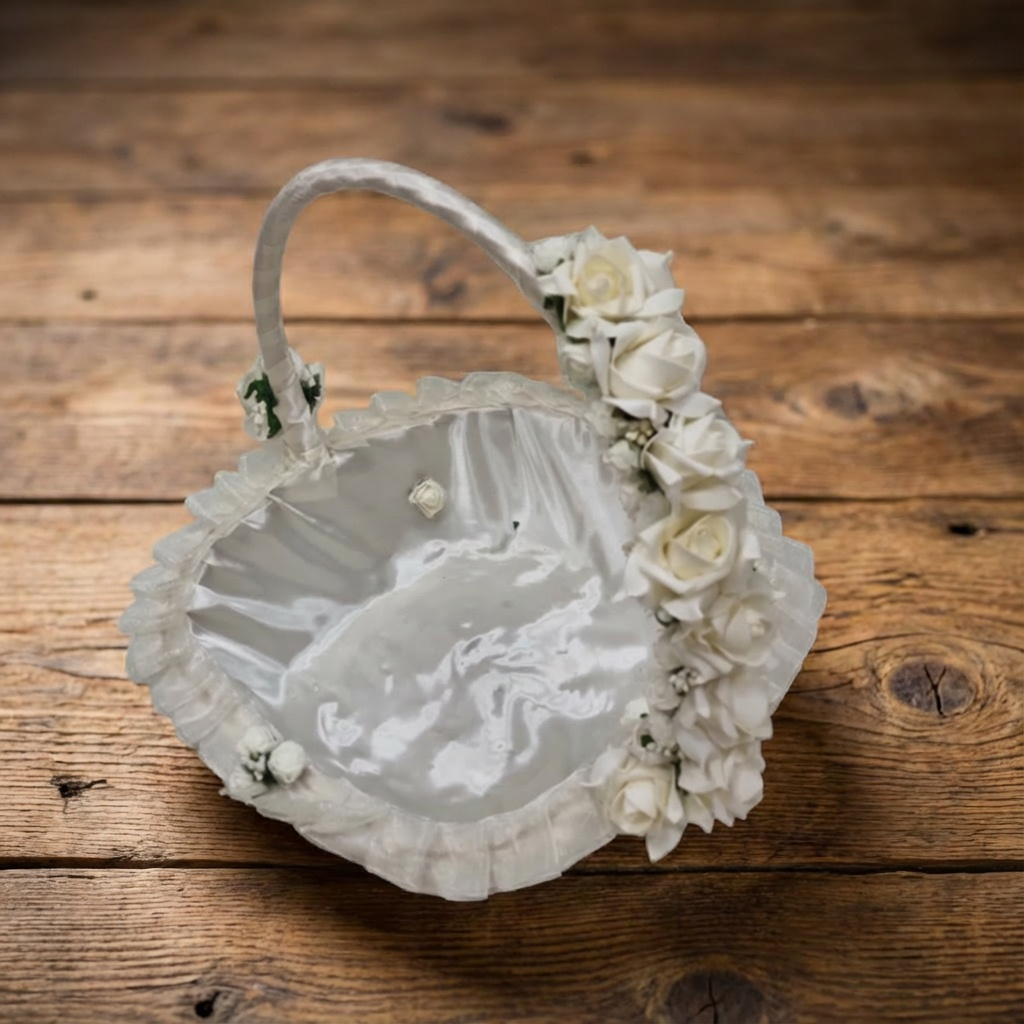Početna Asortiman Dekorativne korpe Korpa S2 – Krem sa satenskim masnama i 4 ruze