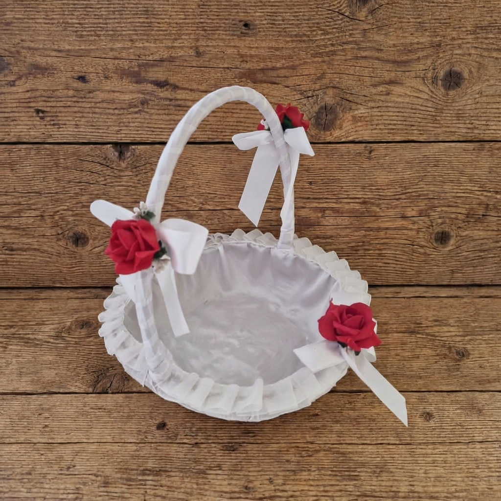 Korpa S2 - Crvena sa satenskim masnama i 4 ruze 1.900 rsd