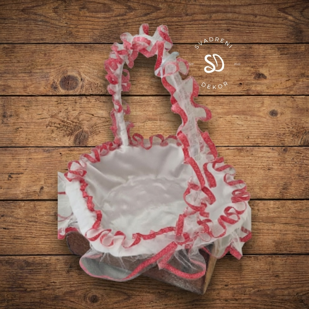 Korpa S2 - Crvena sa satenskim masnama i 4 ruze 1.900 rsd