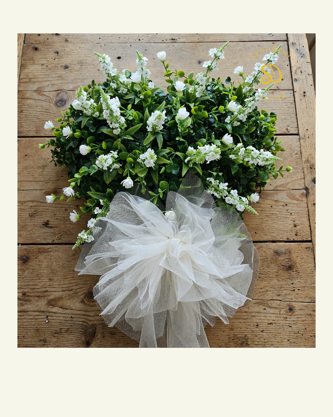 Dekorativno srce S20-ZELENILO SA TIL PUFNOM