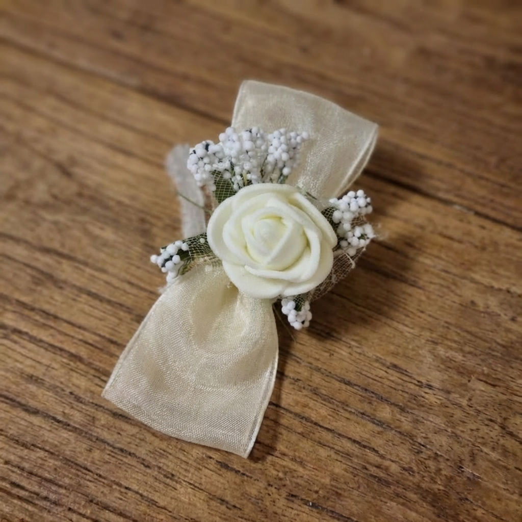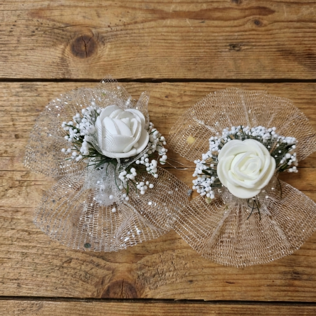 Čupavi organdin sa ružicom,na lepljenje