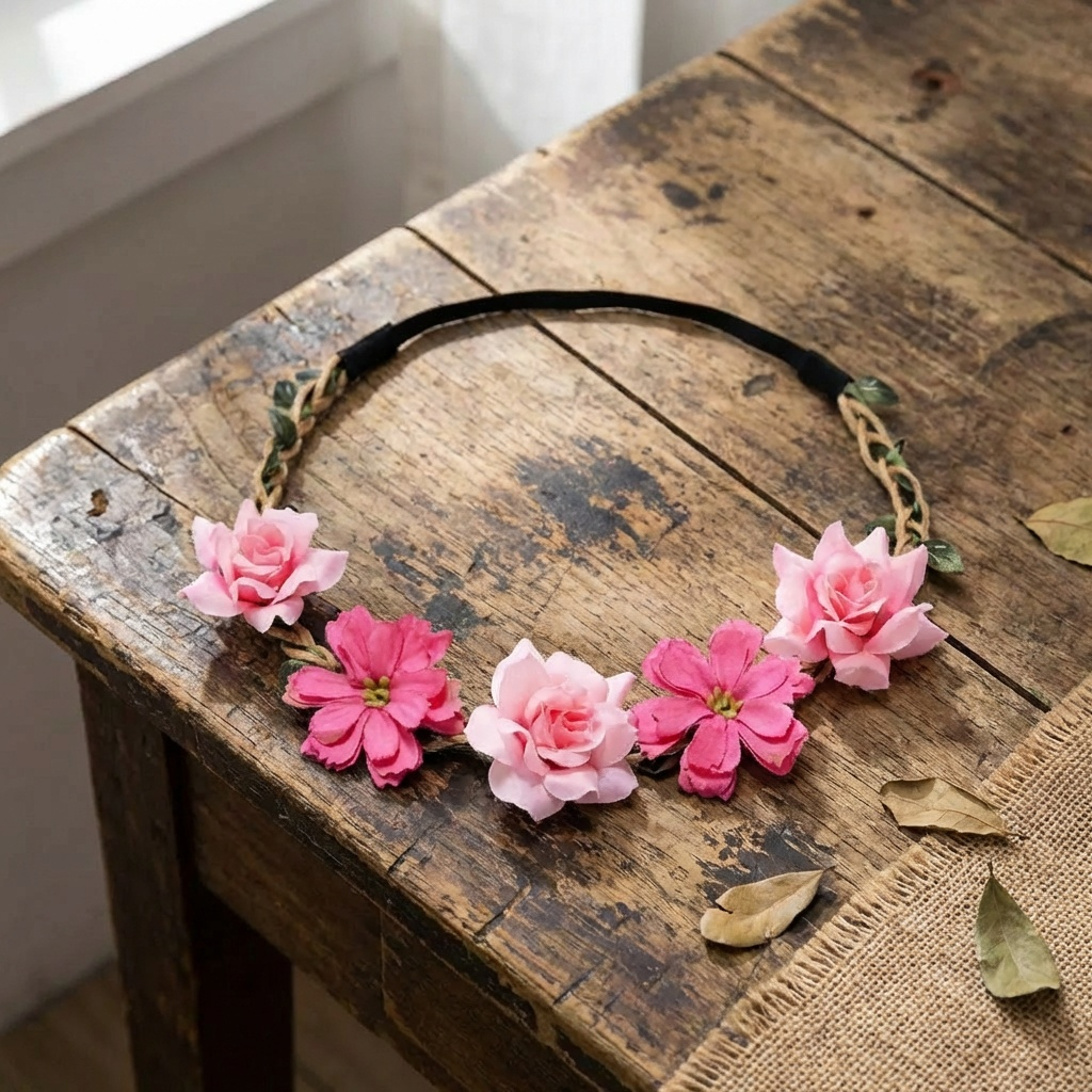 Rajf za kosu -S224-7-krem ruzice sa zelenim bobica 400 rsd